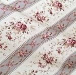 アンティークな花かごストライプ柄が魅力のUSA輸入生地。クラシカルなデザインでレースやフリルとの組み合わせを楽しめます。110c×50cのシーチングクラスのコットン素材、グレー色。在庫注意の輸入商品、要チェック!1,650円(税150円) -