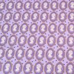 小花が女性の横顔を描いたFreeSpiritブローチ。ラベンダーとアイボリーのクラシカルカラー、コットン素材。小柄で使いやすく、小物にもぴったり。110c×50c、輸入品なので要チェック!1,540円(税140円) -