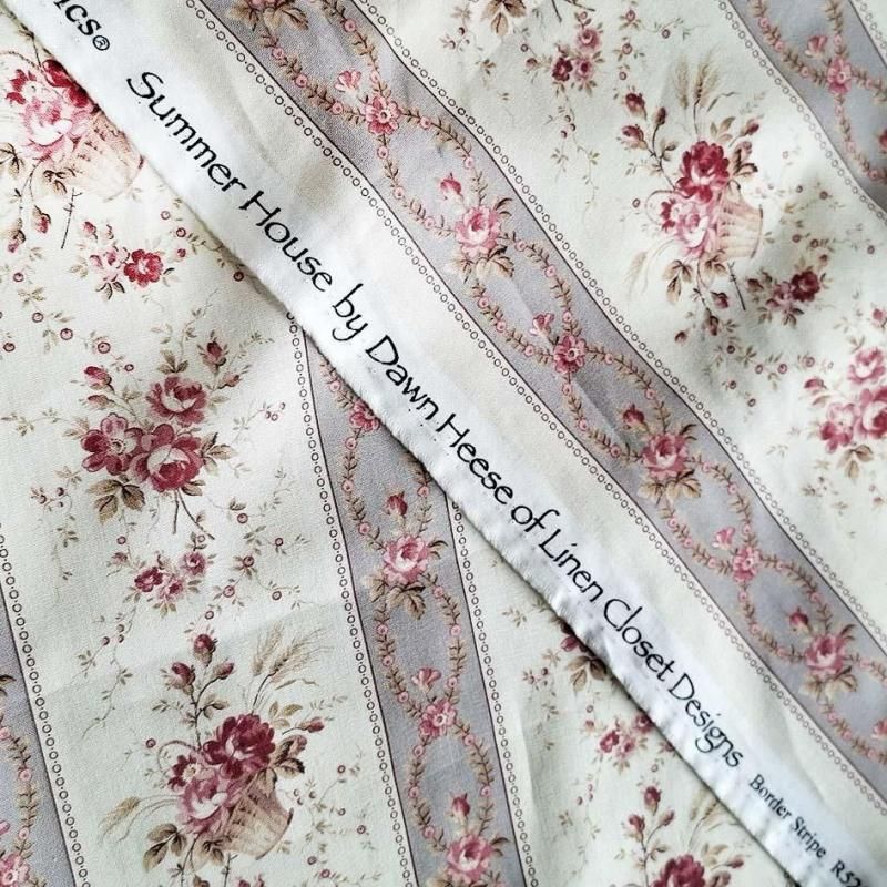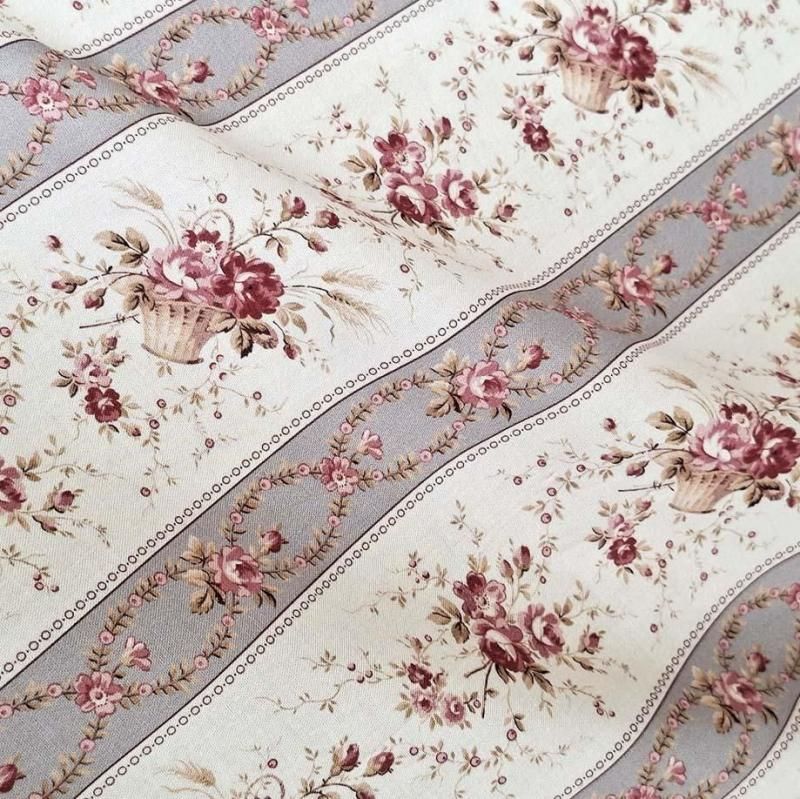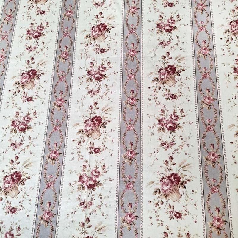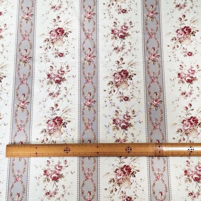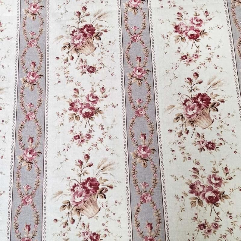 アンティーク調デザインと色使いの薔薇モチーフのストライプデザイン