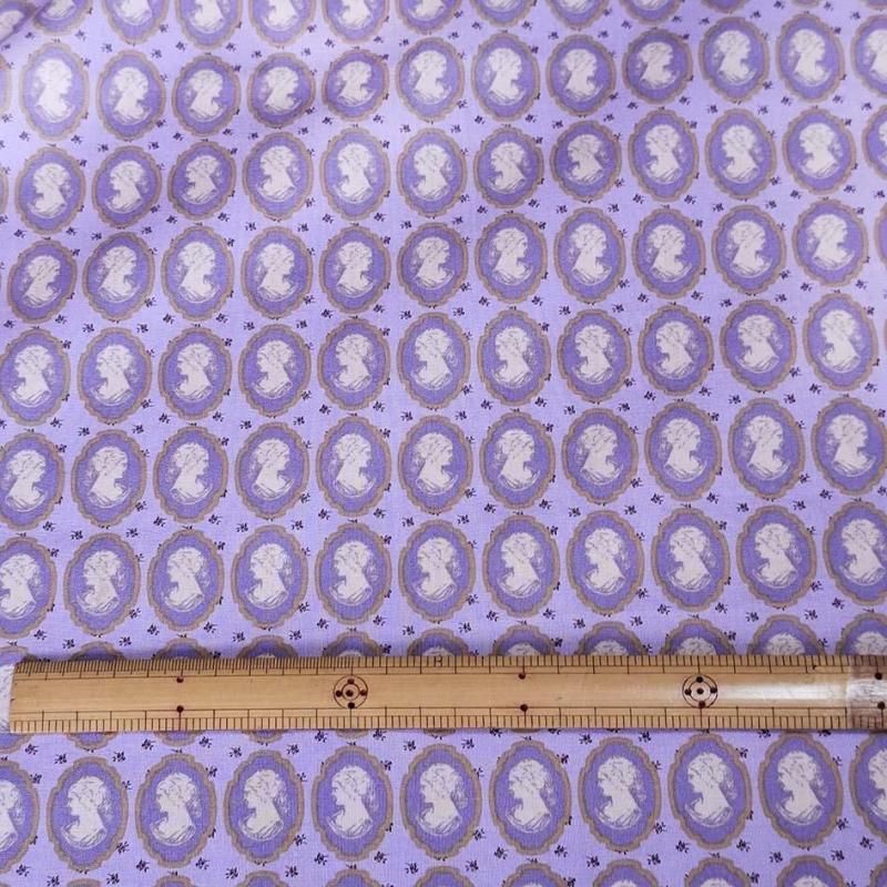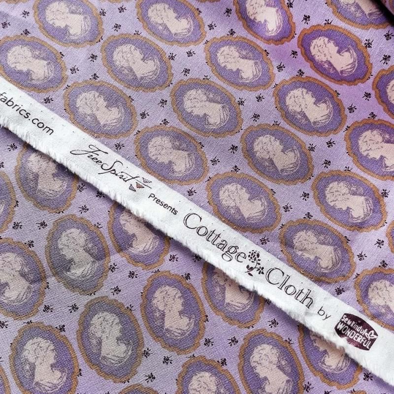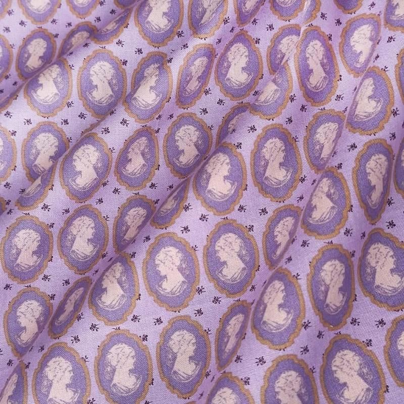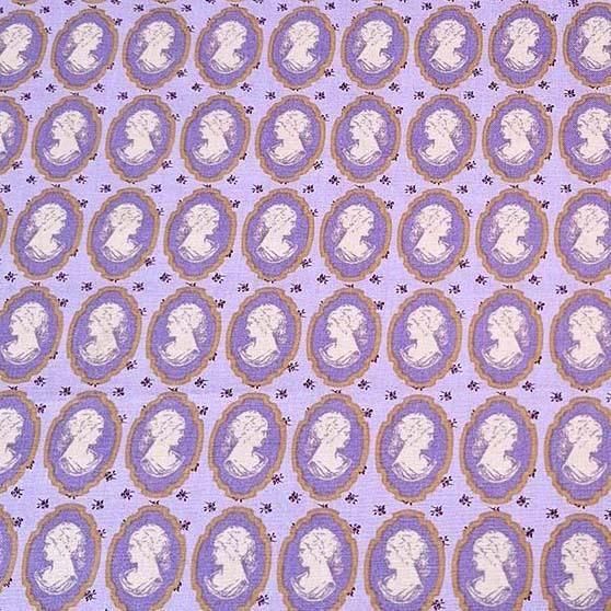小花をベースに女性の横顔が描かれたブローチをボーダーに配置したデザイン