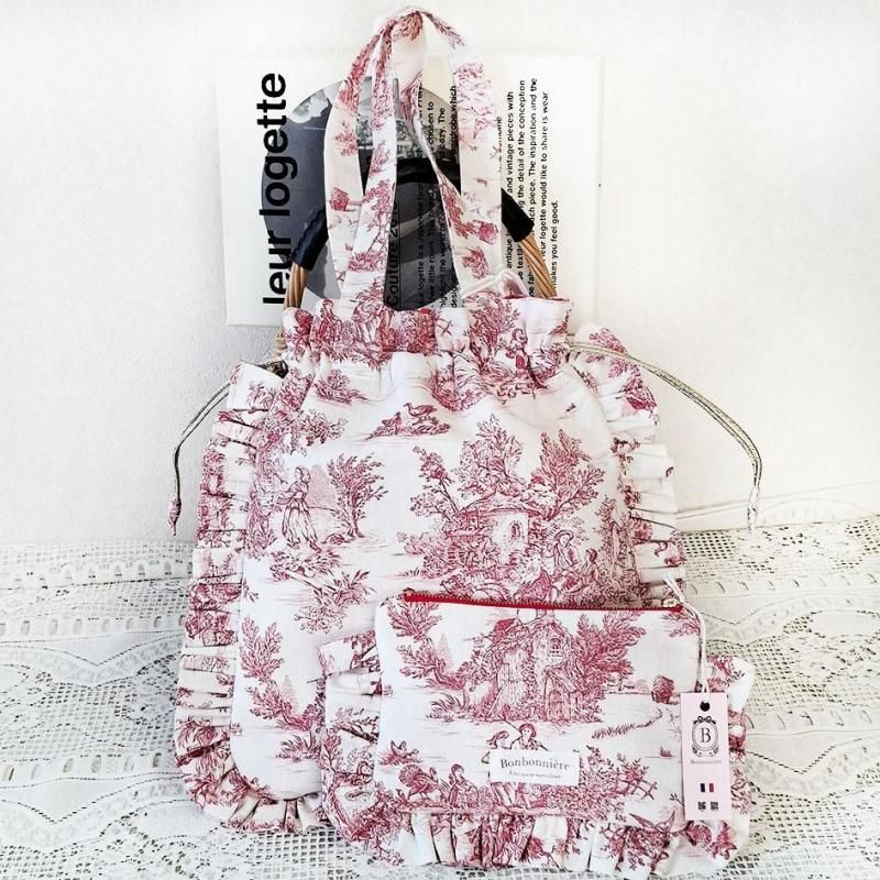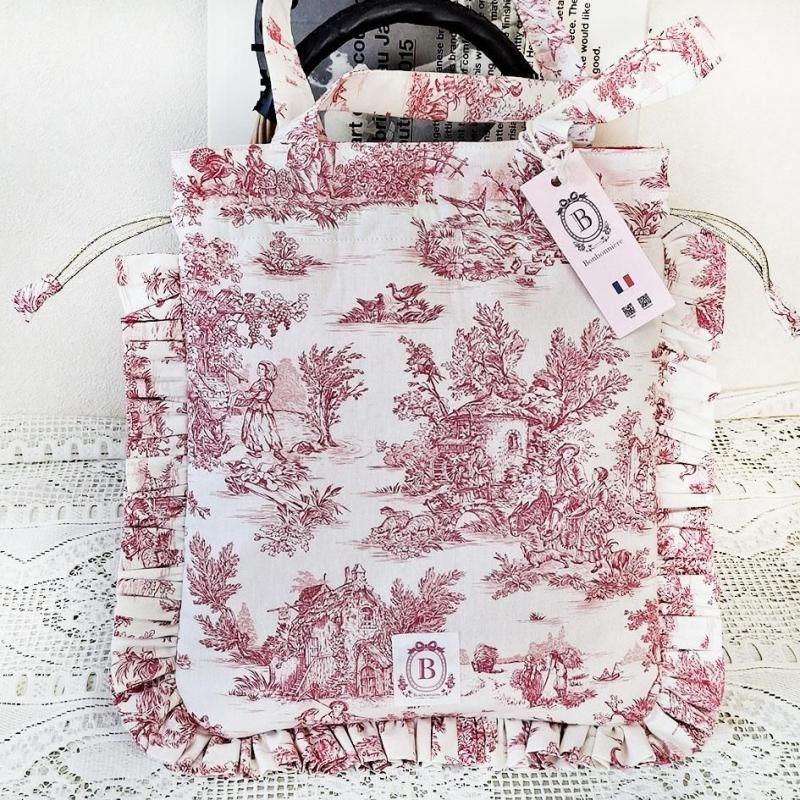 フリルトートバッグToile de Jouy Mini Pastorale Rouge💕