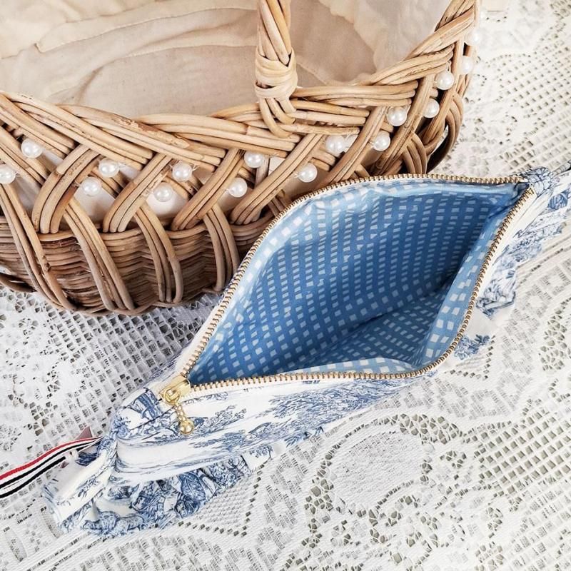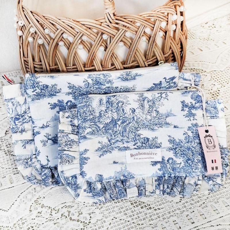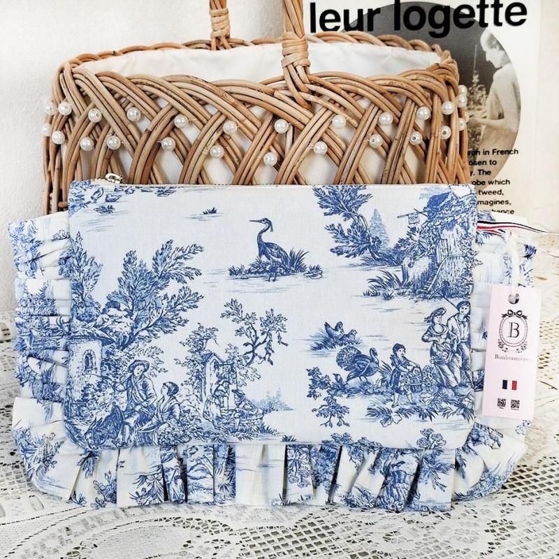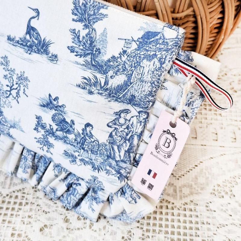 トワルドジュイの人気柄パストラルミニでお作りしたフリルポーチ