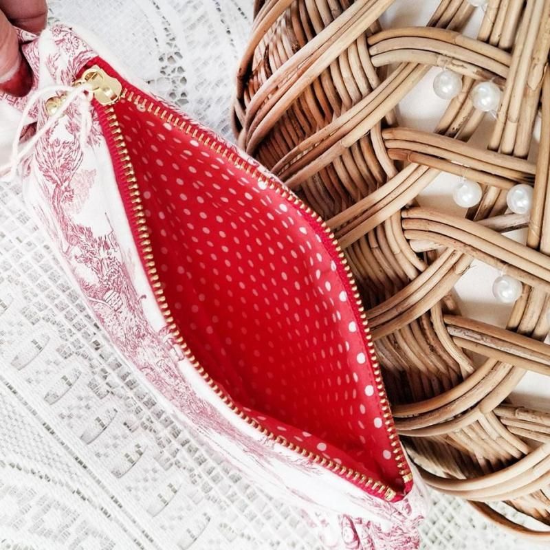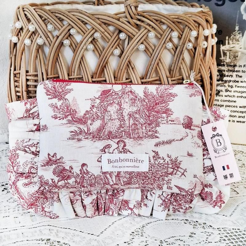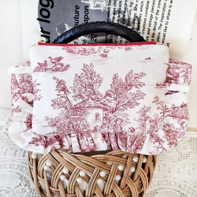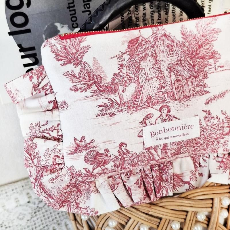 トワルドジュイの人気柄パストラルミニでお作りしたフリルポーチ